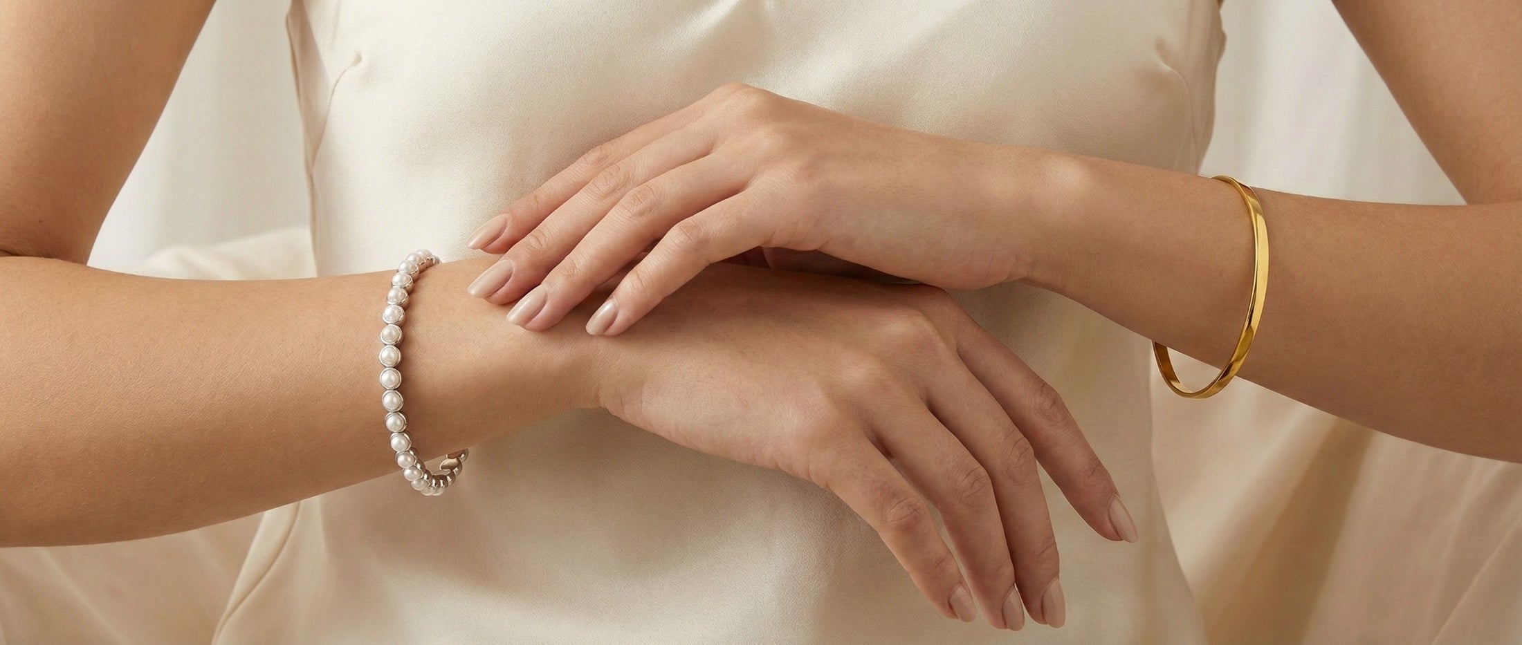 Bracelet argenté en acier inoxydable avec perles d’eau douce